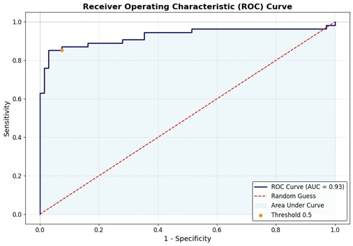 Figure 1: ROC curve of the predictive model with the area under the curve 0.927