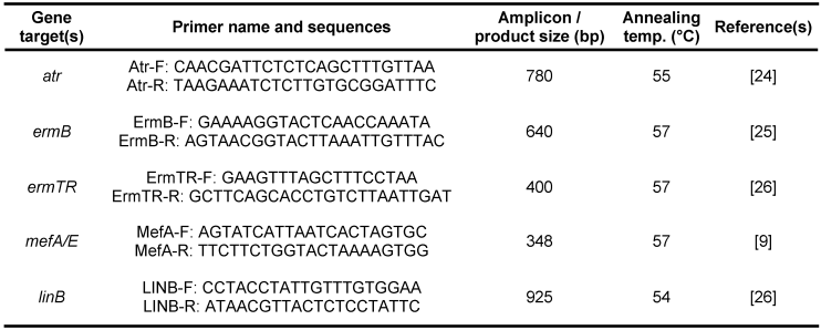 Table 3: Comparison of the PCR assay for mefA/E, ermTR, and ermB*