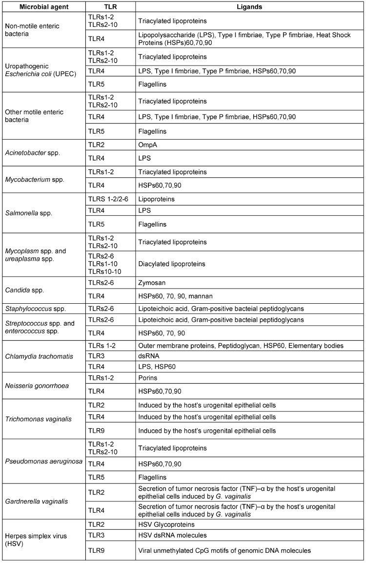 Table 2: The relationship between toll-like receptor (TLR) induction and microbial causative agents of UGTIs in humans