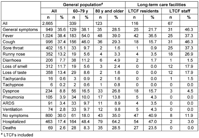 Table 2: Symptoms in SARS-CoV-2-positive general population and in long-term care residents in Frankfurt am Main (as of 28.08.2020)