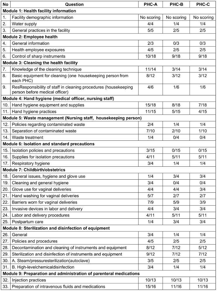Table 3: Scoring sheet of PHCs on the basis of nine modules