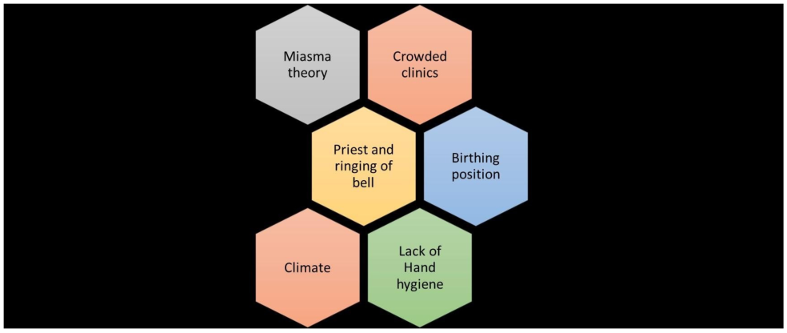 Figure 3: Exploration of Semmelweis’s hypotheses for the causative factor of puerperal fever