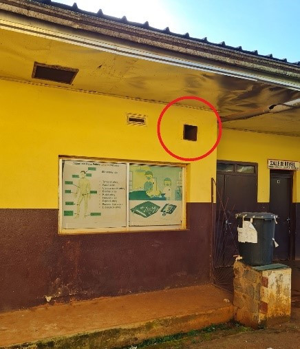 The air filtration system was installed in the OT of the Mbouo Protestant Hospital (Hôpital Protestant de Mbouo) in June 2019. This denominational non-profit district-level hospital provides 200 beds and is part of the health department of the Evangelical Church of Cameroon (EEC). It is situated in the West region of Cameroon at about 1,500 m altitude near Bafoussam. About 500 major and 600 minor surgical procedures are performed every year. Before the installation of the air filtrations system, the OT used window-based ventilation, which is quite common in OT in Cameroonian hospitals, besides wall-mounted air conditioning systems.
