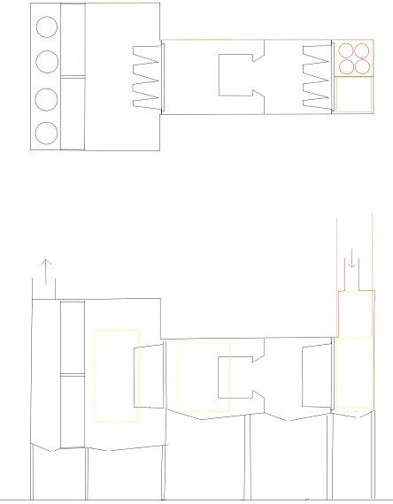 Figure 5: Schema of the air system box, view from above (up) and from the side (down)