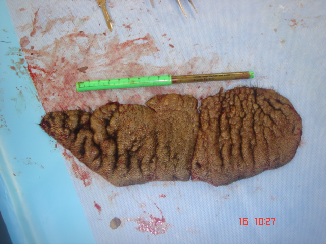 Figure 6: The excised skin of the patient’s scalp after the second procedure