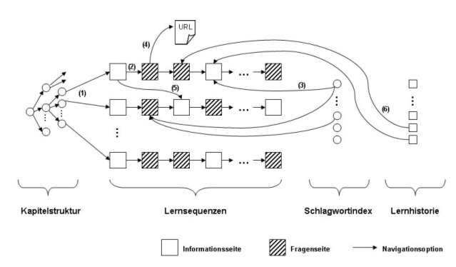 Abbildung 5: Navigationsmöglichkeiten zwischen den einzelnen Lernobjekten (zur Bedeutung der Ziffern siehe Text)