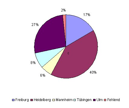 Bei der Fragebogenerhebung wurden insgesamt 1433 Studenten der Medizinischen Fakultäten in Baden-Württemberg befragt. Mit jeweils 28% kamen die größten Anteile der Befragten aus Heidelberg und Ulm (siehe Abbildung 1 [Abb. 1]).