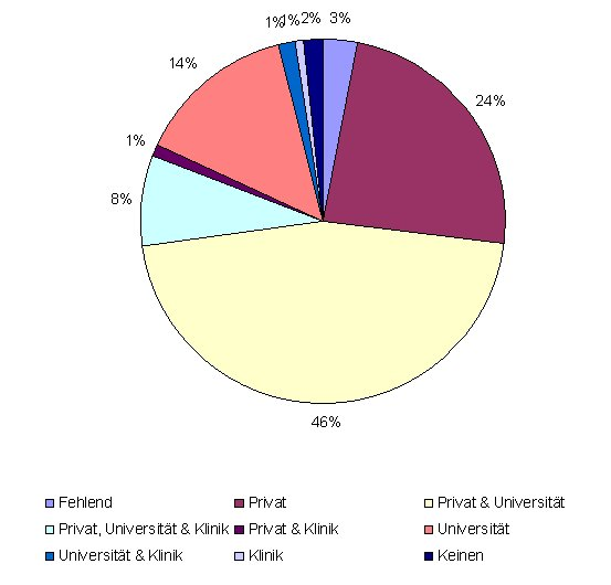 Insgesamt etwa 80% der Befragten verfügen über einen privaten Internetzugang. Immerhin noch etwa 70% haben in der Universität Zugang zum Internet. 12% verfügen über einen Internetzugang in der Klinik. Knapp 2% verfügen über keinen Internetzugang, das sind 23 Befragte.