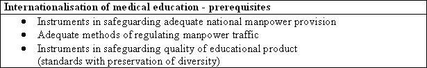 The increasing internationalisation of the medical profession raises the question of safeguarding the practise of medicine and the use of the medical workforce. Standards in medical education, quality assurance and accreditation are probably the most important keywords in the actual debate of medical education policy.
