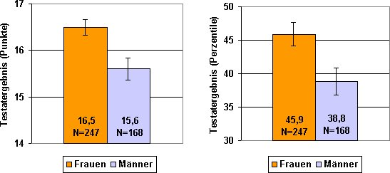 Wie in der Voruntersuchung und in anderen Untersuchungen schon gezeigt wurde, schneiden auch in diesem Testat die Studentinnen besser ab als ihre männlichen Kollegen (siehe Abbildung 7 [Abb. 7]).