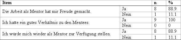 Tabelle 2: Bewertung des Mentors