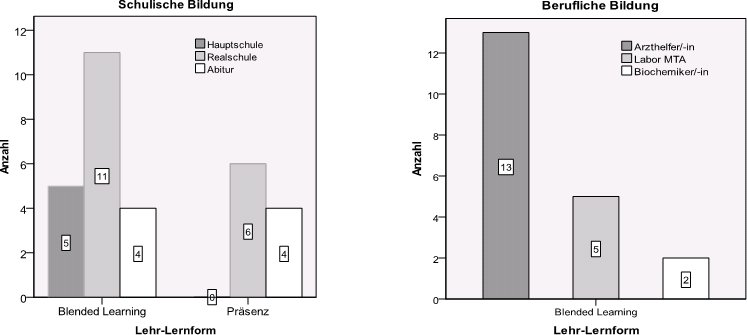 In der Blended Learning Gruppe hat jeder Teilnehmende nach dem Schulabschluss eine qualifizierende Berufsausbildung abgeschlossen; diese stellt gleichzeitig eine Zulassungsvoraussetzung dar.