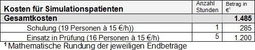 1 An der Medizinischen Fakultät der Universität Ulm werden die Kosten für den Einsatz von studentischen Hilfskräften und Simulationspatienten als „Materialkosten“ oder „Sachaufwendungen“ budgetiert. Dem Zweck gemäß wurden beide Posten in der Kostenaufstellung als Personalkosten angeführt.