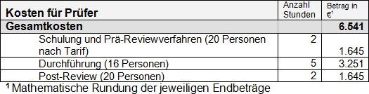 Tabelle 4 : Personalkosten für Prüfer nach Inhalt