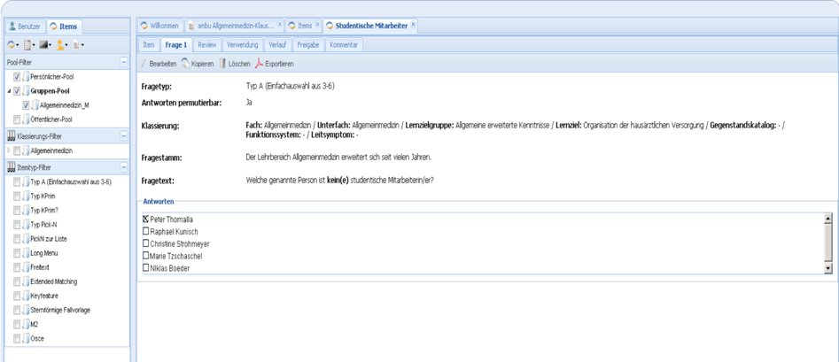 Prüfungen, Allgemeinmedizin, Item Management System