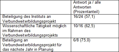 Tabelle 1: Beteiligung von allgemeinmedizinischen Instituten an Verbundweiterbildungsprojekten