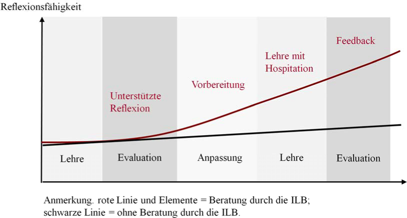 Wenn die Lehrberatung erfolgreich verläuft, gelingt es den Lehrenden, ihre Reflexionsfähigkeit zu steigern und, damit verbunden, ihre Lehre selbstständig weiterzuentwickeln. So kann sich professionelle studierendenzentrierte Lehre entwickeln. Der Effekt einer Lehrberatung sollte sich auch in studentischen LVE als Qualitätsindikator der Lehre wiederspiegeln. Das Vorgehen der ILB wird im Folgenden an einem konkreten Beispiel genauer beschrieben.