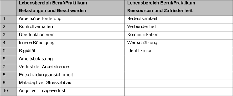 Damit wird das Praktikum, trotz des hohen Stresses, den viele Studierende beschreiben, positiv bilanziert. Die Daten bestätigen, dass ein Zuviel an Stress (messbar über explizierte Beschreibungen des Stresses und auch über verstärkte psychosomatische Symptome; BOSS I und II) mit einem niedrigeren Erwerb von Kompetenzen einhergeht, emotional nicht nur Überforderungsgefühle fördert, sondern auch Zweifel ob der Berufswahl, Motivationsrückgang und Unzufriedenheit mit dem Studium verstärkt. Hier wäre demnach zu überlegen, in welcher Form frühzeitig erkannt werden kann, dass kritische Grenzen eines Eustresses überschritten sind, stattdessen gesundheitsgefährdender Disstress vorliegt. Hier wäre an Mentoren oder auch Beratungsangebote für Studierende in den Praktika nachzudenken.