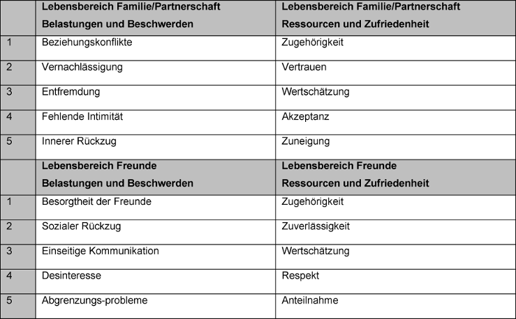 Abbildung 4: Übersicht über die Skalenkonstrukte der Skala Familie/Partnerschaft und Freunde (BOSS I bzw. BOSS III)