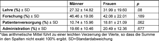 Tabelle 2: Prozentuale Aufteilung der einzelnen Tätigkeitsbereiche im Geschlechtervergleich.*
