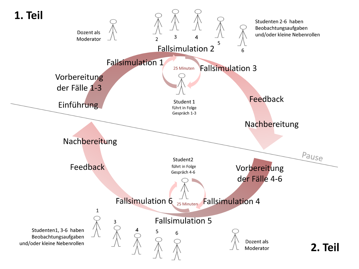 Damit das Lehrformat Kompetenzen i.S. von ärztlichen Rollen adressiert, werden verschiedene Maßnahmen ergriffen: In der Einführung sollten die Dozenten