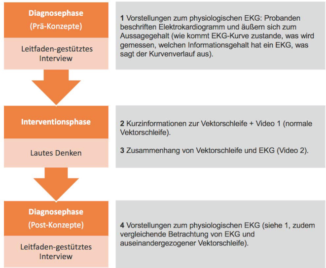 Schlussfolgerung: Durch das Erfassen typischer Fehlvorstellungen zum physiologischen Elektrokardiogramm und das Aufzeigen lernförderlicher Interventionen liefert die Studie einen Beitrag zum verstehenden Lernen, der in der physiologischen Grundausbildung von Medizinstudierenden genutzt werden kann.