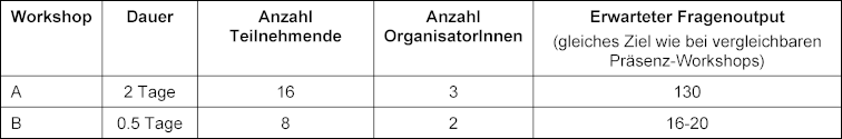 - Wird der erwartete Fragenoutput in den Online-Workshops erreicht?