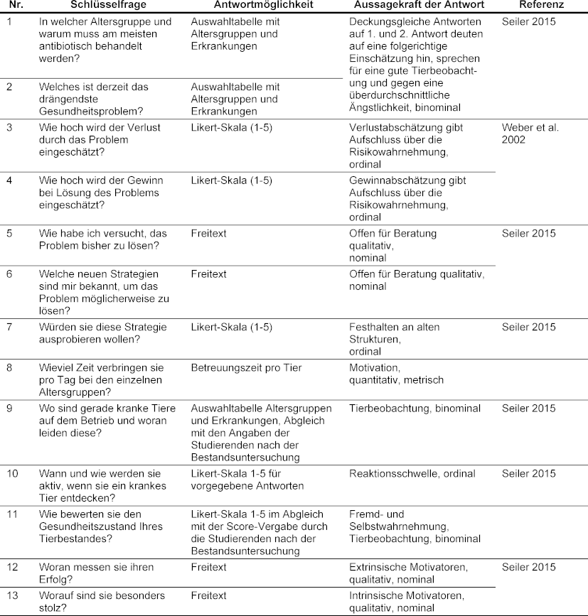 Tabelle 4: Schlüsselfragen an die Landwirtin/ den Landwirt während der Bestandsuntersuchung