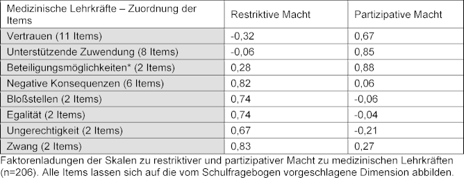 Tabelle 3: Medizinische Lehrkräfte – Zuordnung der Items