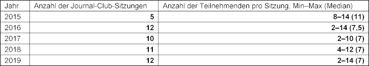 Tabelle 2: Anzahl der evaluierten Journal-Club-Sitzungen und der Teilnehmenden