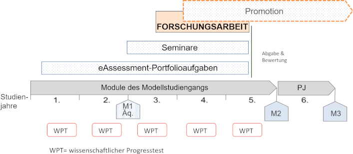 Abbildung 3: schematischer Ablaufplan des longitudinalen Wissenschaftsmoduls in den Studienjahr 1-5