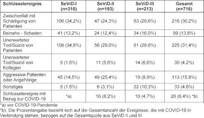 Tabelle 3: Häufigkeiten von Schlüsselereignissen von Second Victims in Deutschland