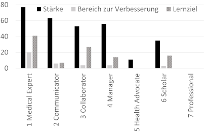 Ergebnisse: Themen wurden in den Feedbackgesprächen eher als Stärken diskutiert, wenn die skalenbasierten Bewertungen hoch waren und es viele positive Kommentare zu einem Item gab. Themen wurden eher als Bereiche zur Verbesserung diskutiert, wenn die Anzahl der negativen Kommentare hoch war. Themen mit vielen (positiven und negativen) Kommentaren und Themen, die als verbesserungswürdig diskutiert wurden, führten eher zu Lernzielen. Wir fanden eine Reihe von Lernzielen, die über die Kompetenzen des MSF-Fragebogens hinausgehen und im Zusammenhang mit der Entwicklung der professionellen Identität gesehen werden können.