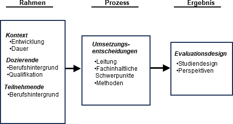Zielsetzung: Weitgehend unbekannt ist, wie interprofessionelle Fortbildungen gestaltet werden und welche beruflichen Hintergründe Teilnehmenden und Dozierende mitbringen, obschon diese für die Planung, Durchführung und Zielerreichung wichtig sein können. Ziel der Studie ist es daher, einen systematischen Überblick über die in Studien beschriebenen Rahmenbedingungen, Gestaltungsprozesse und Evaluationsdesigns interprofessioneller Fortbildungsangebote zu geben.