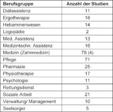 Tabelle 2: Häufigste Berufsgruppen in interprofessionellen Fortbildungen