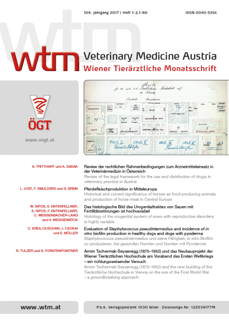 • Ausgabe 2022 Artikel 10: Paulsen P, et al. Entwicklung des Schlachthofwesens und der Fleischversorgung in Klagenfurt im fachhistorischen Kontext [Slaughter and meat supply in Klagenfurt, Austria] (DOI: 10.5680/wtm000010)
