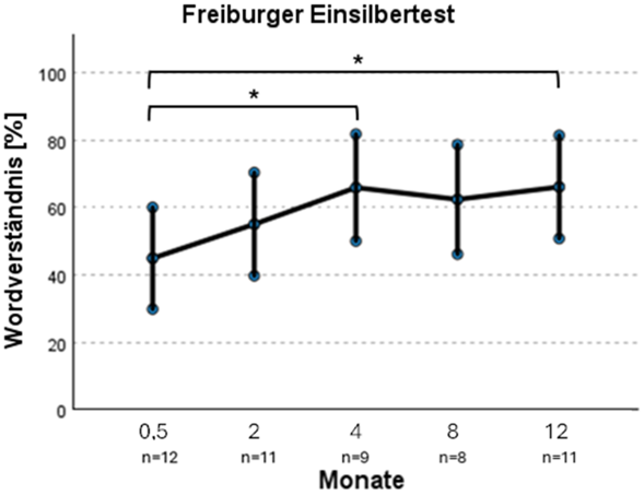 Abbildung 2: Wortverständnis über die Monate im Freiburger Einsilbertest