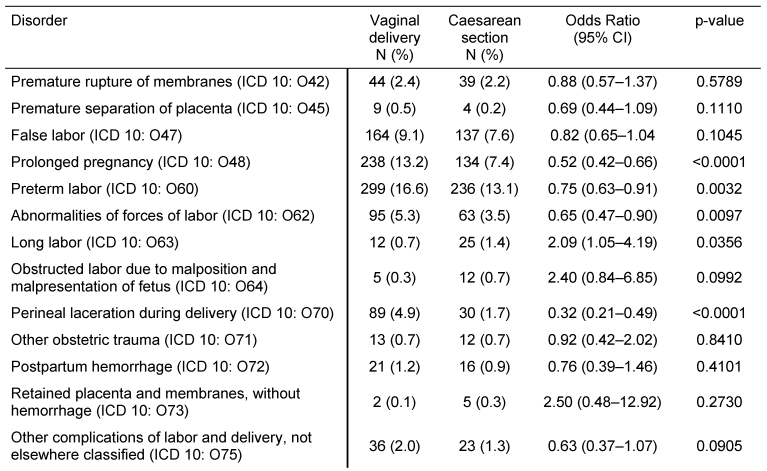 Table 3: Pregnancy-associated diseases in women with prior vaginal delivery vs. caesarean section in German gynecological practices