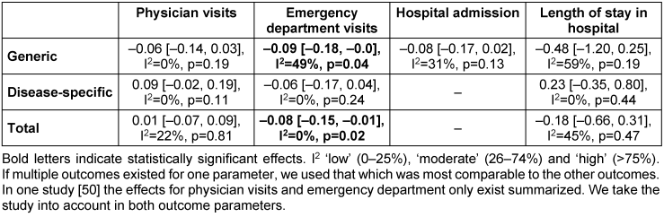 Table 3: Summary – Health care utilisation (overall ES, 95% CI, I2, p-value)