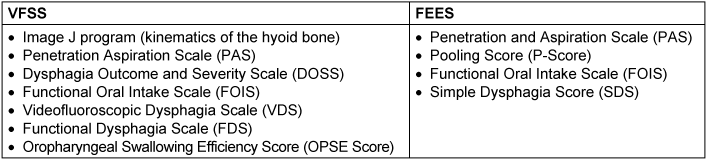 Table 1: Overview of scales used with videofluoroscopy (VFSS) and fiberoptic endoscopic evaluation of swallowing (FEES)