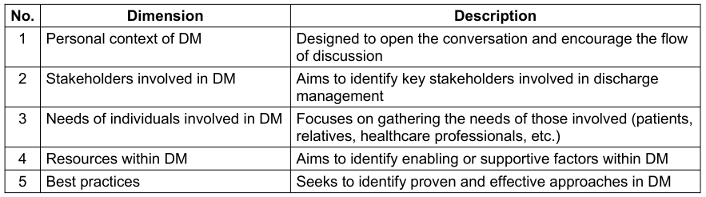 Table 1: Dimensions of the discussion guide