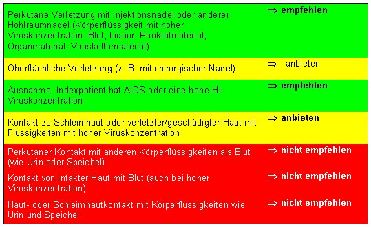 Die empfohlenen Indikationen für die HIV-PEP sind in Tabelle 2 [Tab. 2] zusammengefasst.