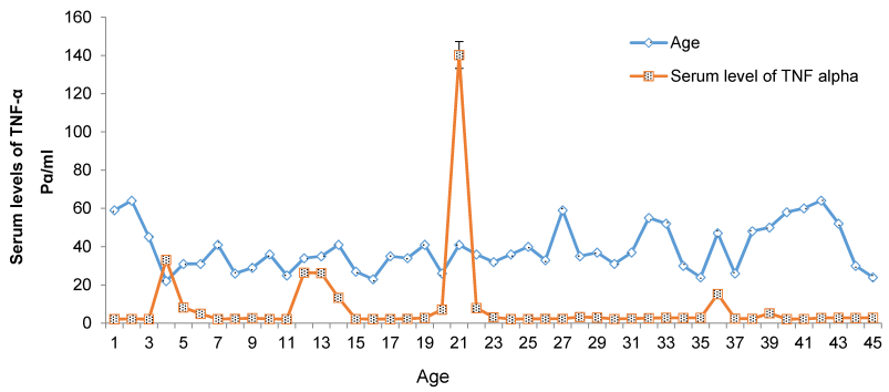 Figure 3: Correlation between serum levels of TNF-α and different age groups