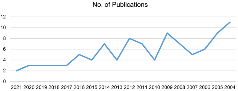 We have observed a declining trend in research productivity in this field, with the greatest number of articles in 2004 (i.e., xx?) and the least number in 2021 (i.e., two). This contrasts with the other areas of ophthalmology, such as dry-eye disease, refractive cataract surgery, myopia [9], [10], and diabetic retinopathy [14], where bibliometric analyses have shown an increasing research yield over the years. Priorities and areas of interest for medical research might shift over time. Resources for ocular infections may be diverted by newly discovered illnesses, infections, or ailments that receive greater attention. For example, the COVID-19 pandemic caused a significant shift in the resources and focus of study [15]. Another possible reason for this can be the decrease in the percentage of blindness caused by ocular infections after the introduction of antibiotics [16].