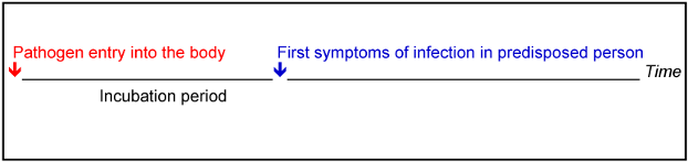Every infectious disease is preceded by an incubation period. This is the period between the entry of an infectious agent into the human body and the appearance of the first symptoms of infection, i.e., the outbreak of the infectious disease (Figure 1 [Fig. 1]). For example, an incubation period of days to weeks is specified for invasive aspergillosis [46], [47].