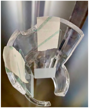 Figure 2: Frosted glass slides (15 mm×60 mm×1 mm, one side sandblasted), arranged in the D60 disinfection system hanger