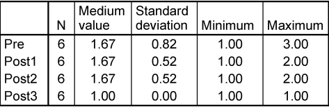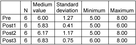 In order to compare the measured values, the Friedmann test for variance by ranks for dependent sample checks was deployed. During this test checks were carried out whether the central tendency of multiple subsequent measures differs significantly [7]. The test has the advantage that the measured values need not be distributed normally and require ordinal scale level only. In Table 1 [Tab. 1] the individual test times have been summarized.