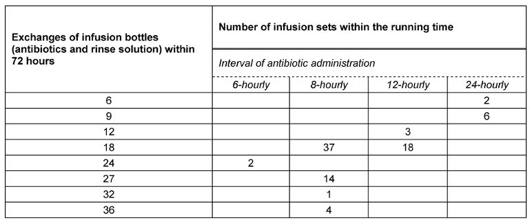 Table 1: Frequency of infusion bottle exchanges within 72 h