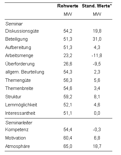 Tabelle 1: Ergebnisse der Seminarevaluation (HILVE)