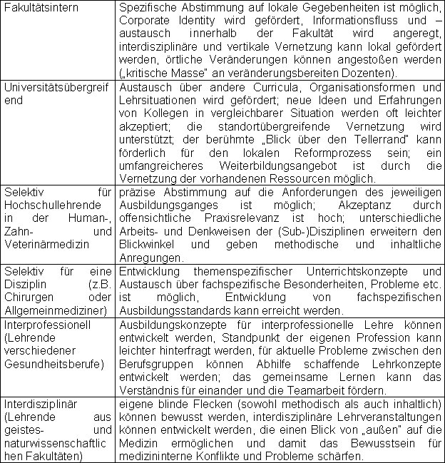 Tabelle 2: Organisationsformen medizindidaktischer Qualifikationsmaßnahmen [1]